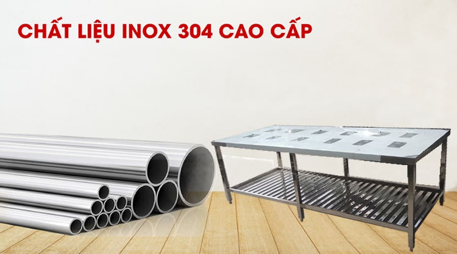Những đặc tính nổi bật như: chống oxi hoá và ăn mòn, ít biến màu, độ bền cao…Inox 304 được xem là nguyên liệu cao cấp hàng đầu trong nhiều lĩnh vực sản xuất. Đây là những đặc tính nổi bật của chất liệu inox được thiết kế làm nên chiếc bàn sơ chế thực phẩm của Toàn Phát.