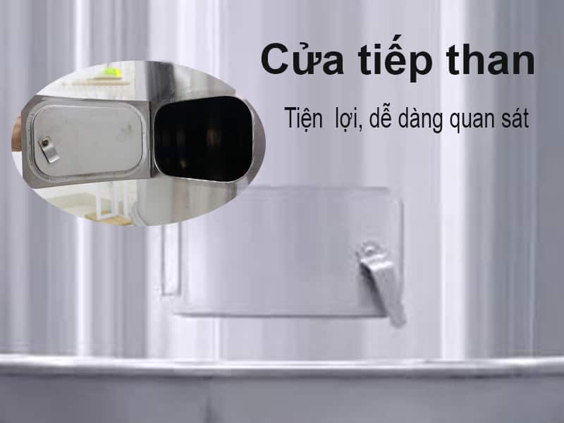 Cửa tiếp than dễ dàng quan sát và thêm than ngay cả trong quá trình quay thực phẩm