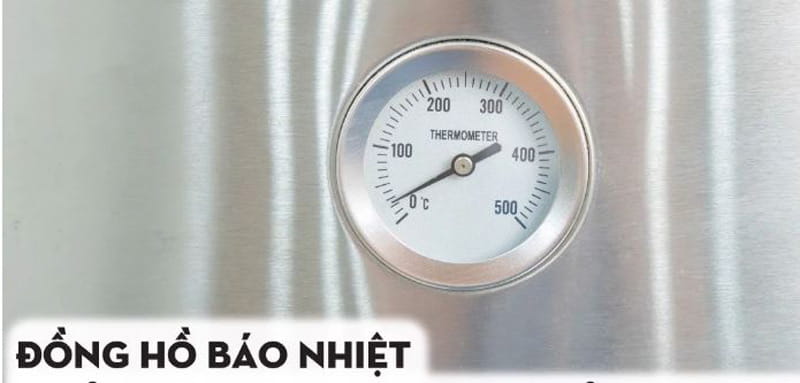 Đồng hồ báo nhiệt của lò quay heo, quay lợn, quay vịt 100 thông báo mức nhiệt chính xác bên trong lò. Giúp người dùng có thể kiểm soát và điều chỉnh nhiệt phù hợp với từng giai đoạn quay nướng.