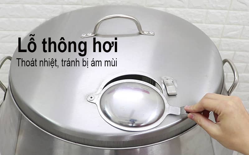 Lỗ thông hơi thiết kế bên trên nắp lò giúp thoát nhiệt khi nhiệt độ trong lò quá cao, thực phẩm khi quay không bị ám mùi do than, khói bụi.