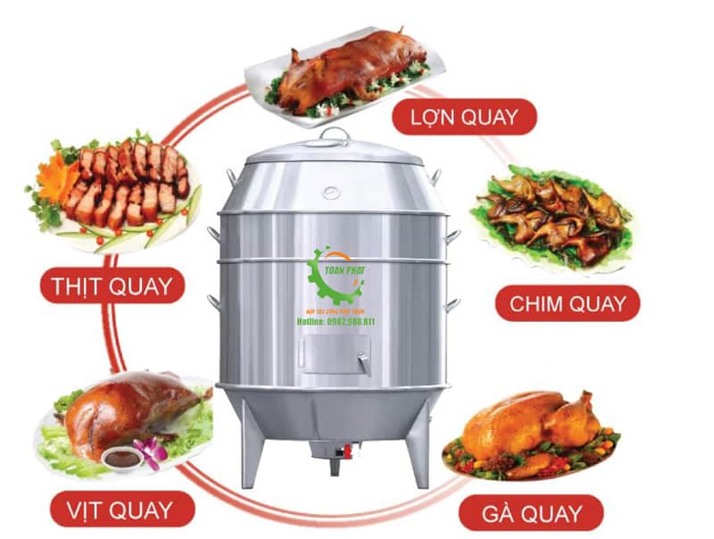 Các loại lò quay thông thường hầu như dùng để quay vịt, gà hoặc heo miếng nhưng đối với lò quay heo phi 100 ngoài quay vịt, gà heo miếng bạn có thể dung để quay heo sữa nguyên con…