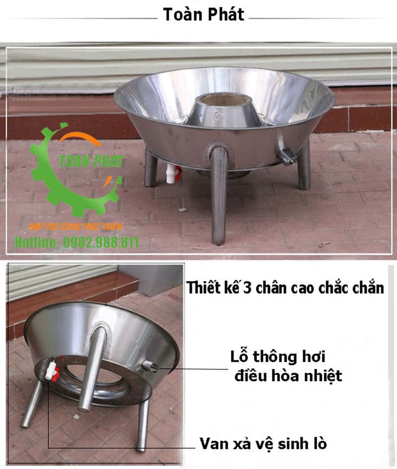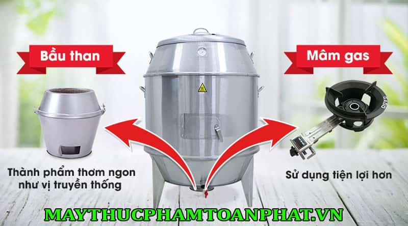 Lò có thể sử dụng linh hoạt cả 2 nhiên liệu than và gas. Với nhiên liệu than thì bộ phận gia nhiệt sẽ là bầu than, còn với nhiên liệu gas thì gia nhiệt bằng mâm gas.