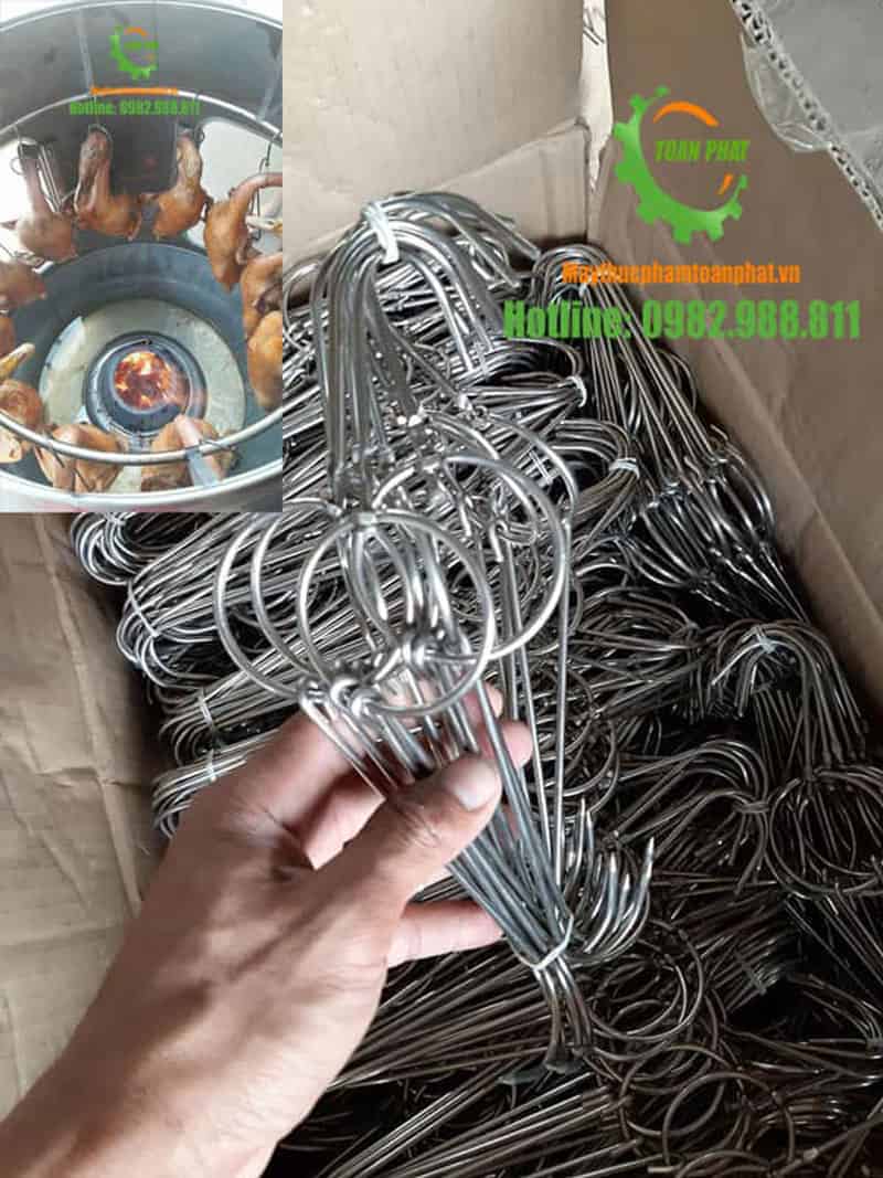 Phụ kiện đi kèm lò bao gồm móc inox để treo gà vịt, ghim nhọn