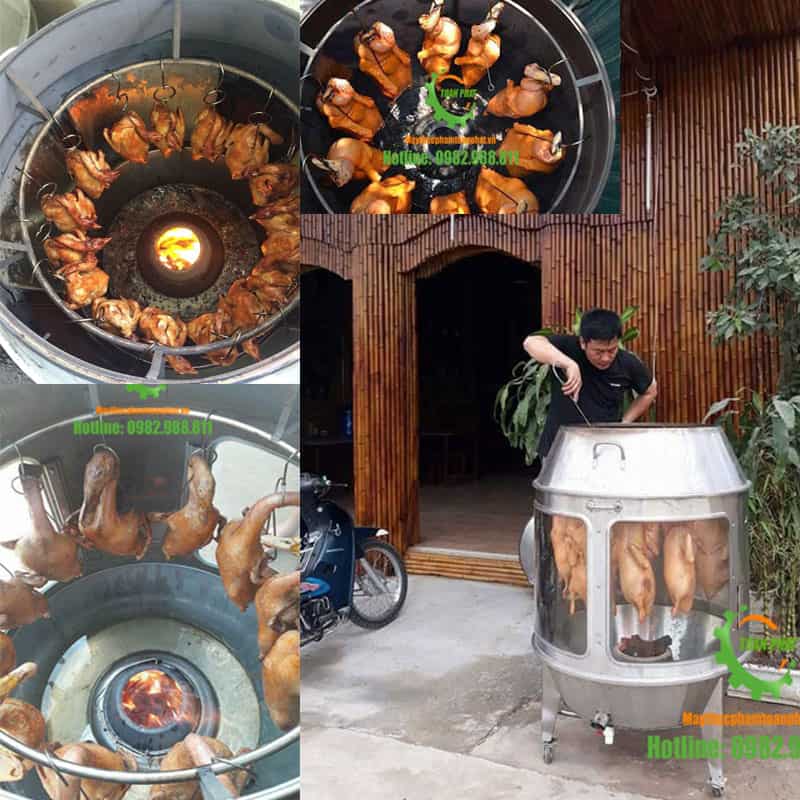 Lò có thể chứa tối đa lên tới 15 con gà hoặc vịt quay cùng lúc để tiết kiệm nhiên liệu, tiết kiệm thời gian và phục vụ được nhiều thực khách trong thời gian ngắn.