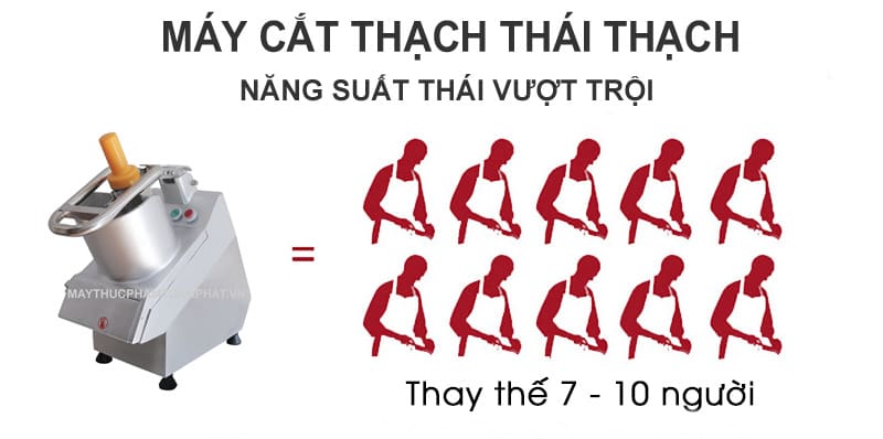 Máy cắt thạch thái thạch cho năng suất khoảng 40-120kg/h. Với năng suất như vậy, một máy thái có thể thay thế từ 7-10 nhân công thái bằng tay.