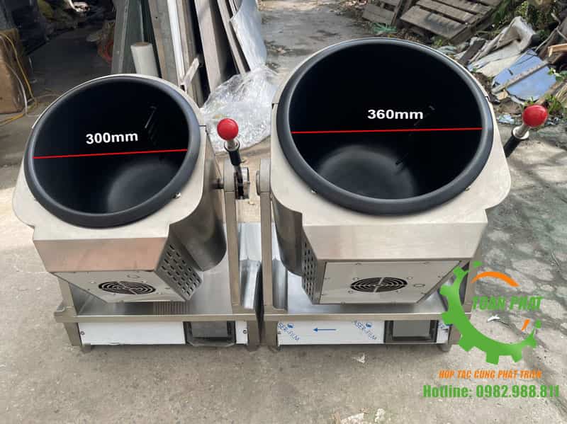 Máy chiên xào đa năng sử dụng điện điều khiển cảm ứng của Toàn Phát hiện tại đang có 2 loại kích thước nồi chính đó là 300x300mm và 360x360mm tất cả đều được phủ một lớp chống dính nano nên khi chế biến nhiều đồ ăn cùng lúc cũng không lo bị dính nồi, cho sản lượng tăng gấp nhiều lần so với cách chiên xào thủ công.