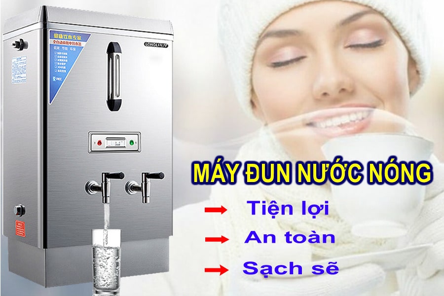 - Năng suất cao lên tới 90L nước/h, một ngày có thể sản xuất hàng trăm, hàng nghìn lít nước sôi