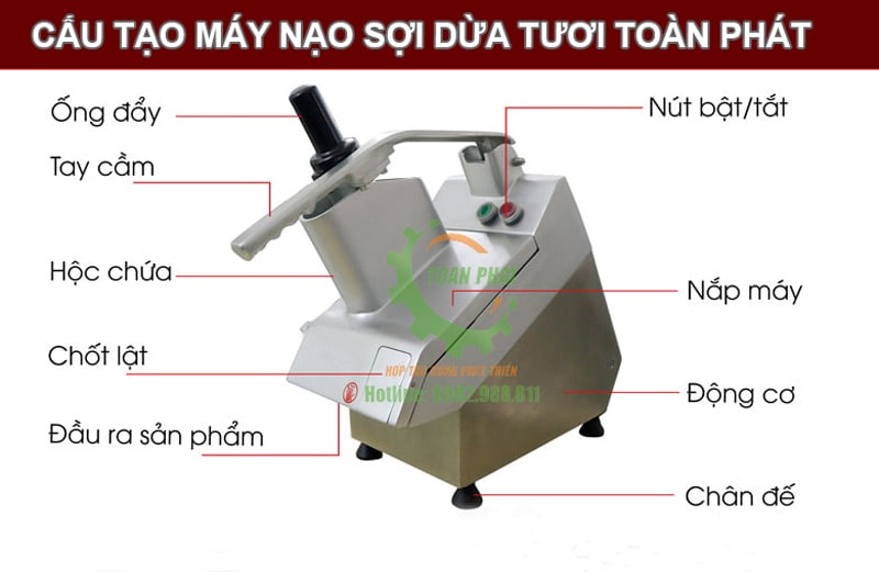 Đặc điểm cấu tạo của máy nạo bào sợi dừa tươi