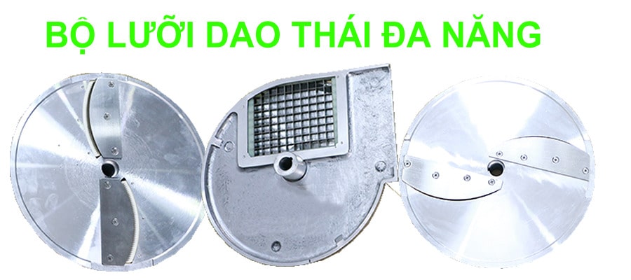 Bộ lưỡi dao được thiết kế hoàn toàn bằng thép không gỉ, vô cùng sắc bén, thái đa năng các hình dạng rau củ như thái lát, thái sợi, thái hạt lựu năng suất cao. Với khả năng sơ chế nguyên liệu đa dạng và nhanh chóng máy thái rau củ công nghiệp chắc chắn sẽ là trợ thủ chuyên nghiệp của người đầu bếp. Với thiết bị này, người sử dụng có thể lắp ráp và thay thế các tính năng khác nhau trong cùng một chiếc máy. Bên cạnh đó còn đảm bảo giữ nguyên được độ tươi ngon và dinh dưỡng của rau củ.
