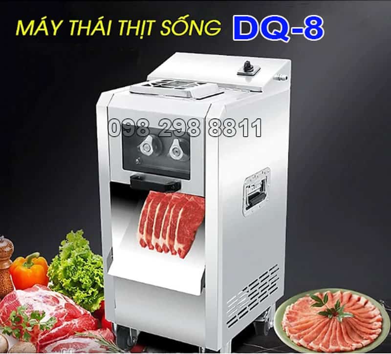 Mỗi ngày thái hàng trăm kg thịt bằng tay thì vô cùng vất vả và mất nhiều thời gian. Máy thái thịt tươi sống DQ-8 là dòng máy thái thịt hiện đại giúp người dùng thái thịt nhanh, năng suất cao 200kg/ giờ, thiết bị này có điểm vượt trội hơn các dòng máy thái thịt sống khác là thay thế được lưỡi dao với các độ dày lát cắt khác nhau, là sự lựa chọn không thể bỏ qua cho các nhà hàng, khách sạn hoặc các bếp ăn công nghiệp…