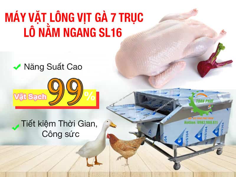Nếu Quý khách đang có nhu cầu sử dụng máy vặt lông vịt gà 7 trục lô nằm ngang SL16 để phục vụ nhu cầu sử dụng của mình thì hãy liên hê ngay tới Máy Thực Phẩm Toàn Phát. Đây là đơn vị uy tín, chuyên cung cấp các loại máy vặt lông gà, lông vịt với mức giá vô cùng hợp lý. Tới với chúng tôi, khách hàng sẽ được tư vấn một cách nhiệt tình về cách thông số, công dụng cũng như cách dùng của các sản phẩm máy vặt lông vịt gà hoặc các sản phẩm khác.