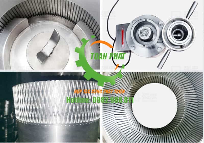 - Trục nghiền bên trong được làm từ Inox nguyên khối, không gỉ, đảm bảo vệ sinh thực phẩm. Bề mặt trục nghiền thiết kế các rãnh răng cưa nhiều tầng đan kẽ nhau tăng hiệu suất nghiền nguyên liệu.