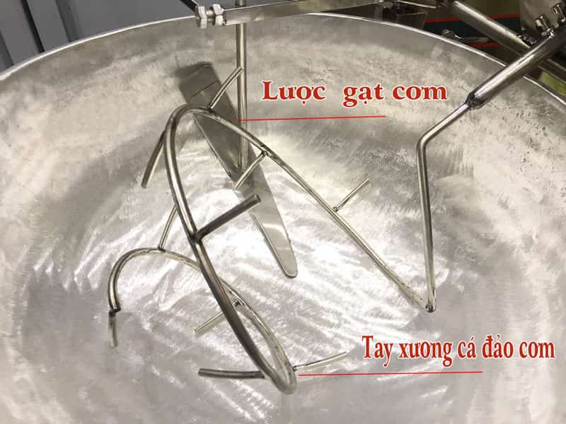 Nhờ có tay đảo cơm hình xương cá tự động đảo cơm khắp các điểm trong lòng chảo, kết hợp bộ phận lược gạt cơm làm cơm luôn được tiếp xúc đều với nhiệt, chín nhanh, săn hạt, cơm tơi mà không bị khô. Hệ thống tay đảo và chảo quay được cài đặt điều khiển bằng motor riêng với nguồn điện dân dụng 220V, có thể điều chỉnh tốc độ hoạt động tùy chỉnh theo nhu cầu sử dụng của đầu bếp.