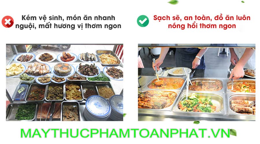 Hơn nữa, đối với những loại tủ giữ nóng thức ăn có nắp giúp hạn chế bụi bẩn hay vật thể lạ rơi vào đồ ăn, đảm bảo an toàn vệ sinh thực phẩm tuyệt đối.